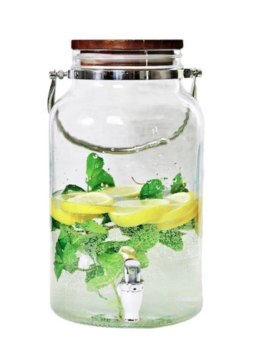 Jooginõu klaasist puidust korgiga, kraaniga komplektis metall alus müük