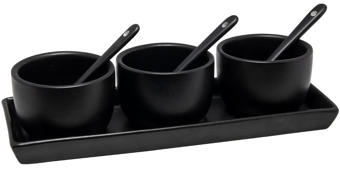 Mustad kausid 3 tk Ø4.5×6.5cm 70ml. Alus 7.5×21.5cm. Lusikas 10cm