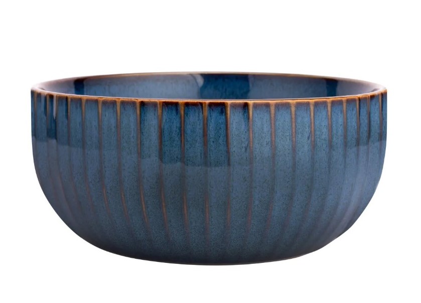 Kauss mille eripära kollased triibud ja erinev sinine toon muudavad peolaua eriliseks.