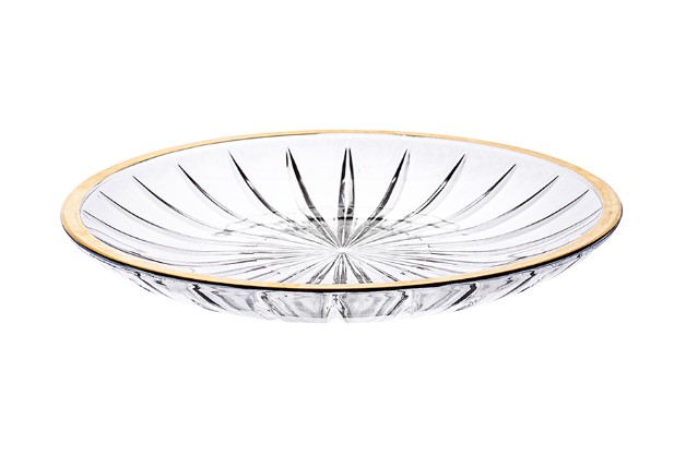 Taldrik mille läbipaistvus ja kuldne ring muudavad kookide või püstijala ürituse eriti glamuurseks.