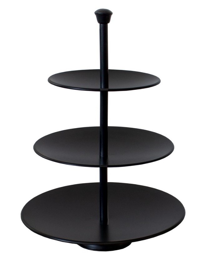 Kolmekordne metallvaagen suupistete serveerimiseks. H34cm L25/20,5/16cm
