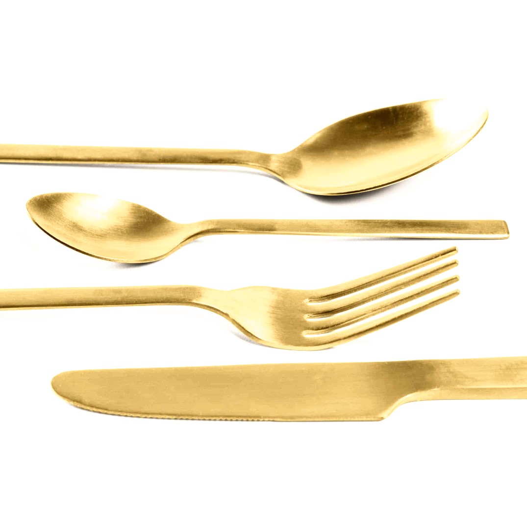 Kuldne koogilusikas mis lisab värvi lauale.