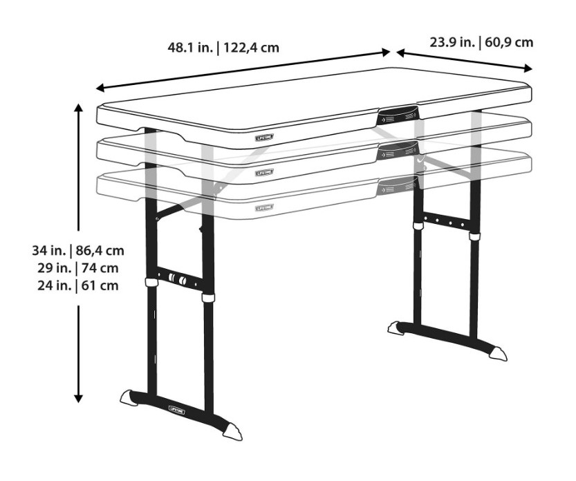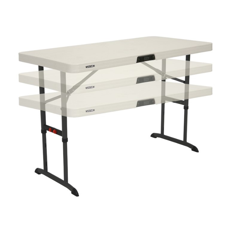 Kokkupandavate jalgadega laud ühestükis lauaplaat reguleeritav kolmeks erinevaks kõrguseseks:
