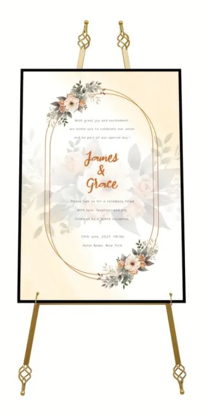 Kuldne molbert sobib suurepäraselt kaupluste, galeriide või restoranide väljapanekuteks, pulmadeks jne