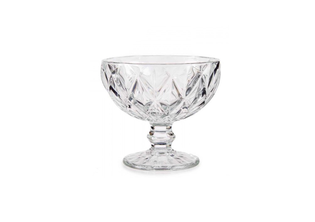 Klaasist mustriga jalal pokaal mida saab kasutada salati, desserdi serveerimiseks.
