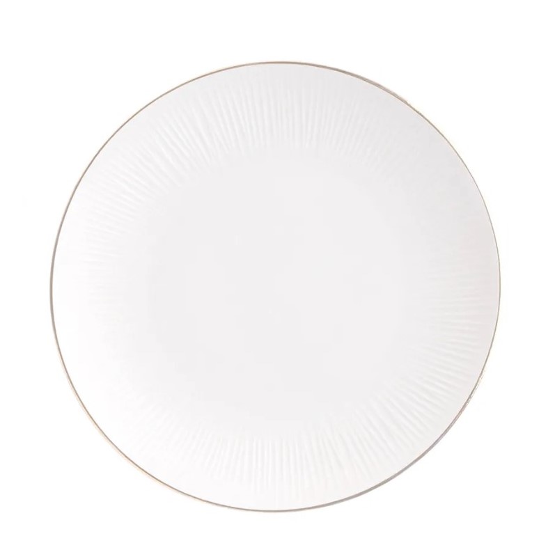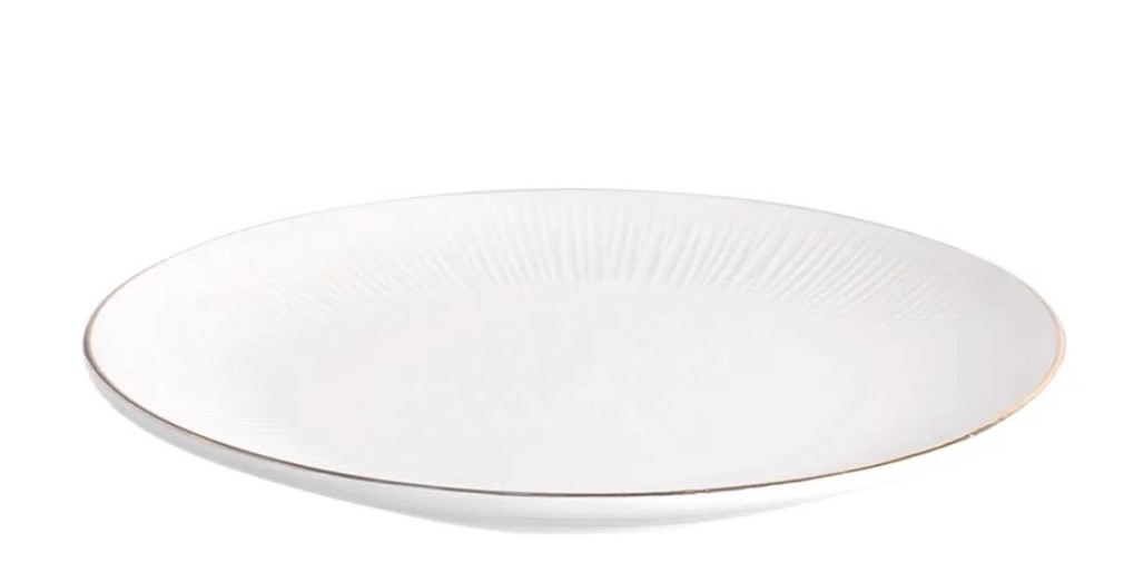 Kuldse mustriline äärega kreemjas taldrik .