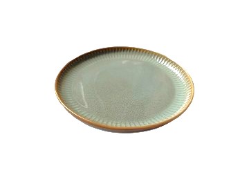 Taldrik mille eripära kollased triibud ja erinev roheline toon muudavad peolaua eriliseks..